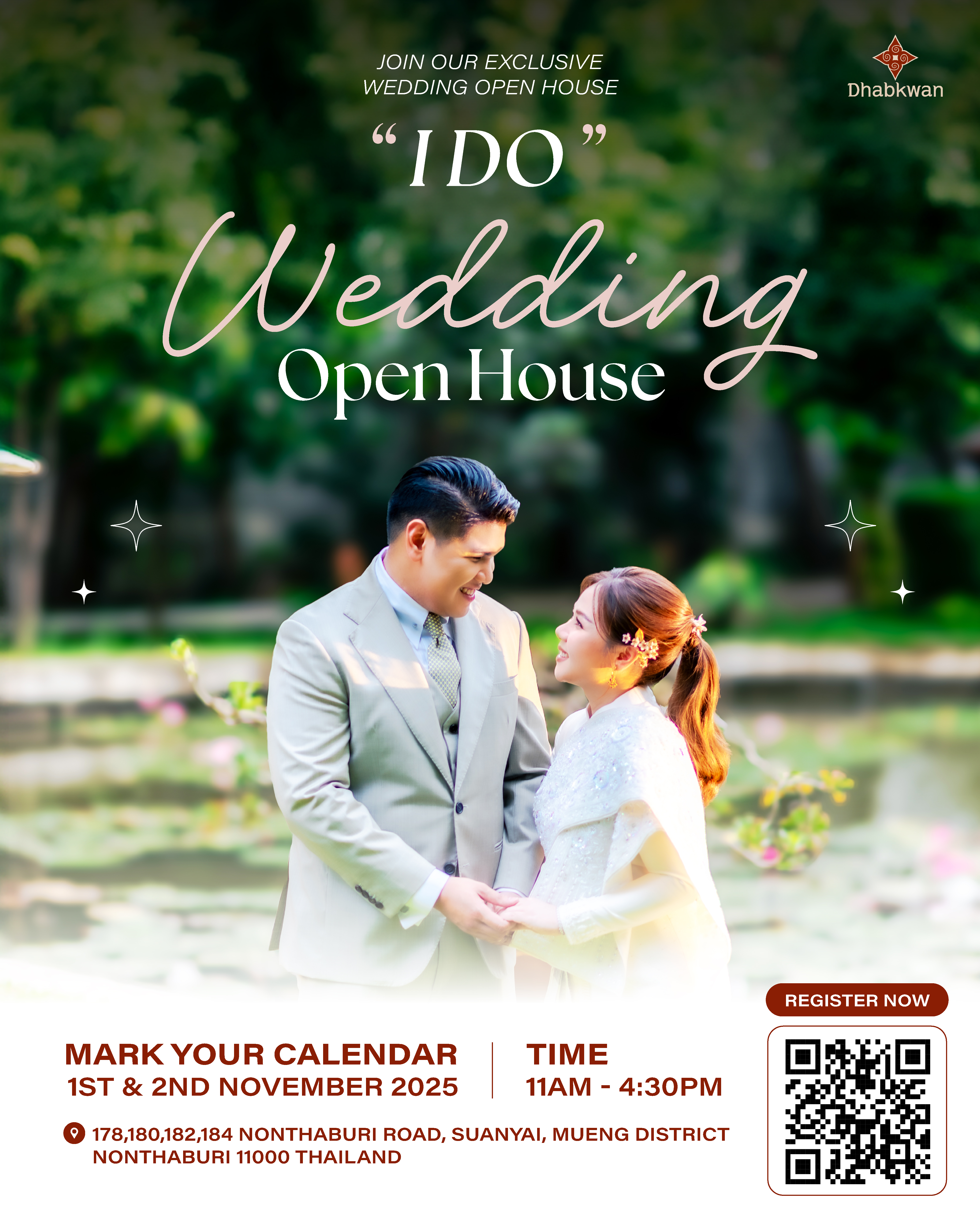 อย่าพลาดโอกาสวางแผนงานสำคัญแบบเอ็กซ์คลูซีฟ สแกนลงทะเบียนหรือผ่านลิงก์เพื่อรับสิทธิพิเศษได้ที่ 📲 https://bit.ly/Dhabkwanweddingfair